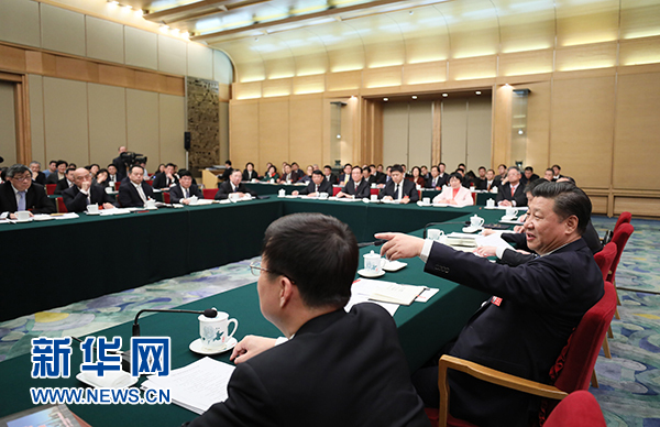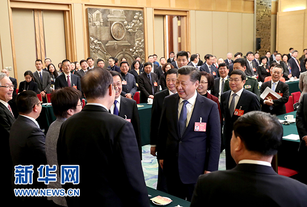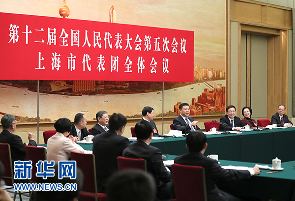 3月5日,中共中央总书记、国家主席、中央军委主席习近平参加十二届全国人大五次会议上海代表团的审议。 新华社记者兰红光摄