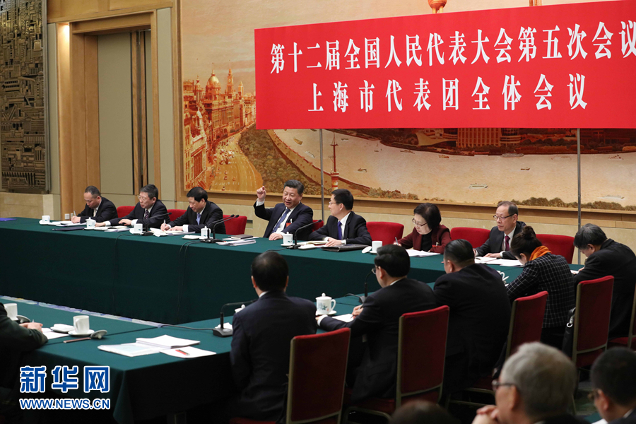 3月5日,中共中央总书记、国家主席、中央军委主席习近平参加十二届全国人大五次会议上海代表团的审议。新华社记者 王晔 摄