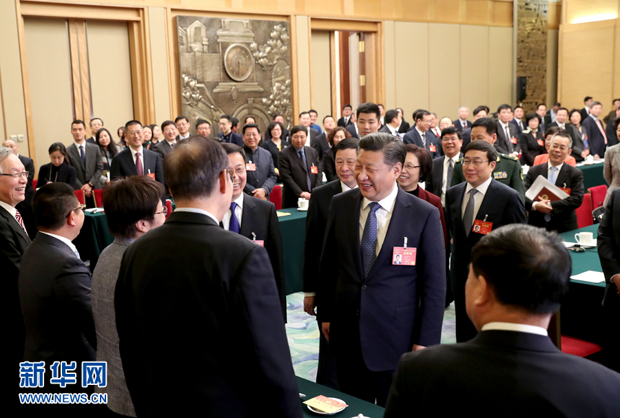 3月5日,中共中央总书记、国家主席、中央军委主席习近平参加十二届全国人大五次会议上海代表团的审议。新华社记者 马占成 摄