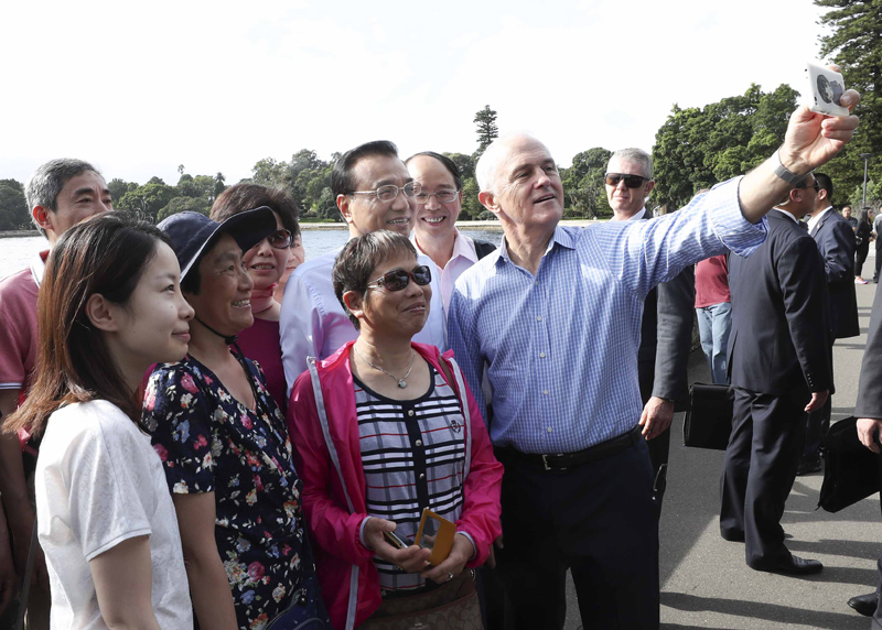 这样的闲庭信步,让人很难想象,就在前一天两国总理从堪培拉到悉尼,从早上至晚间整整11小时,马不停蹄转场7次,通过各个场合向世界释放出携手维护自由贸易的强烈信号。