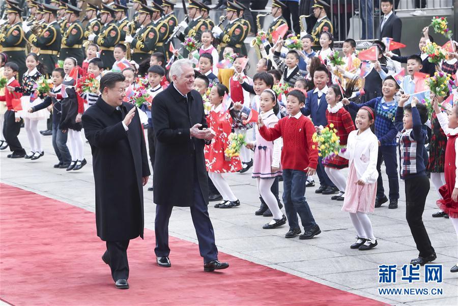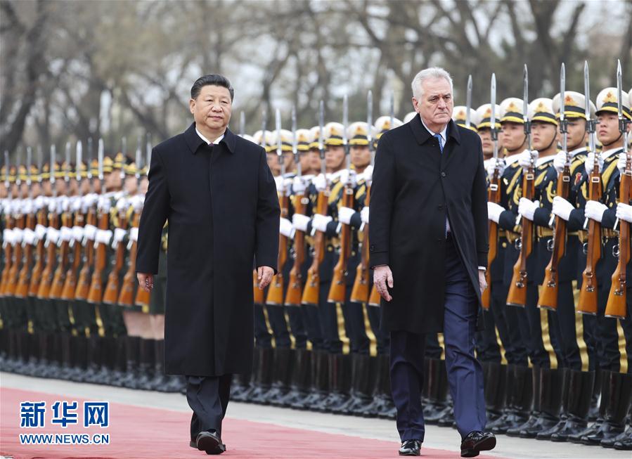3月30日,国家主席习近平在北京人民大会堂同塞尔维亚总统尼科利奇举行会谈。这是会谈前,习近平在人民大会堂东门外广场为尼科利奇举行欢迎仪式。新华社记者 庞兴雷摄
