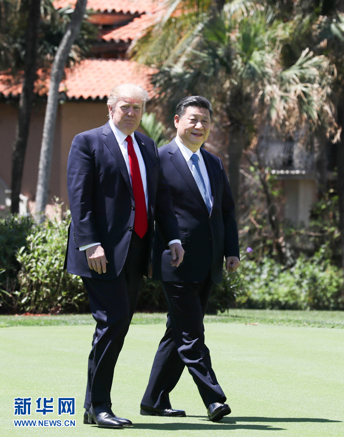 会晤后,习近平同特朗普到秀丽宜人的海湖庄园中散步,在轻松友好的气氛中继续就两国友好合作进行讨论。
