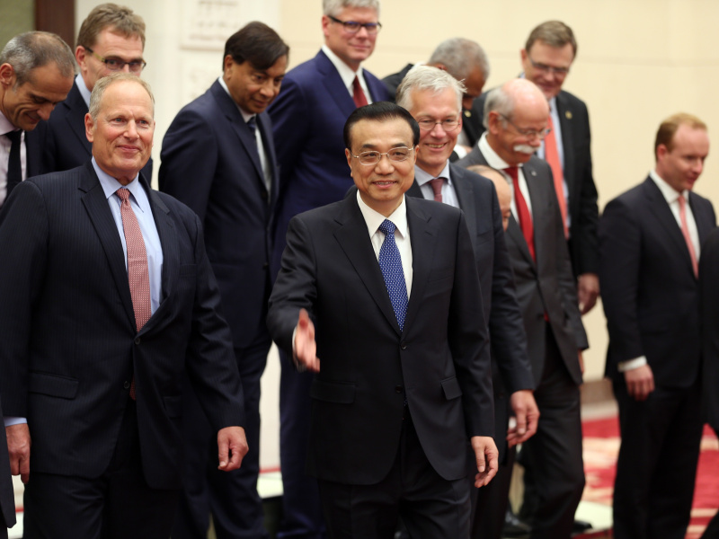 中国日报 武治义 摄 全球最大钢铁公司之一卢森堡安塞乐米塔尔CEO希望与中方开展钢铁合作的话音刚落,全球顶级电工企业法国施耐德电气CEO紧接着表达了参与“中国制造2025”的意愿,而此刻世界最大电子公司之一荷兰皇家飞利浦公司CEO正急待话筒“传”到自己手中。 这一场景出现在6月7日下午,李克强总理在人民大会堂会见来华出席“全球首席执行官委员会”第五届圆桌峰会的跨国企业负责人。18位世界500强企业掌门人坐了满满两排。他们逐个向总理提问,围绕监管改革、贸易便利化和创新能力建设等主题接连提了22个问题。 李克强逐一回应了他们的关切。这让作为主持人的世界化工巨头、美国陶氏化学公司CEO连连赞叹:“您的记忆力真是惊人!能够记住大家提出的22个问题,其中还不乏细节和事例。” 李克强表示,中方愿同各国企业和投资者共享发展机遇,实现互利共赢。总理还打了个形象比喻:“我们彼此合作扩大后摩擦可能会增多,但摩擦的比例会越来越小。我们不会让摩擦的‘小石子’绊倒‘巨人’合作的脚步。” 中国政府正在推进适应全球化、自由贸易和多边主义的职能转变