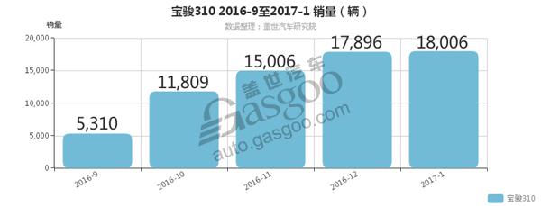 值得一提的是,宝骏310自2016年9月份上市以来,销量一路飙升,1月份销量为1.8万辆,位列轿车销量排行榜第14名,2月份销量为1.16万辆,首次进入轿车销量排行榜前十。