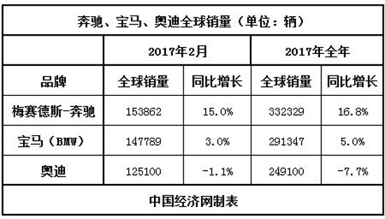 至此,“德系三强”均已公布其2月销售数据。在中国市场,宝马2月以40700辆,比去年同期36774辆增长10.7%的成绩首获在华单月销冠。而奔驰则以95076辆的前两月累计销量,超越宝马、奥迪,真正“坐实”其中国高档车市场销量冠军之位。全球市场,奔驰单月及累计销量则继续保持领先。