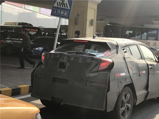 1.外观带有厚重的伪装,但通过尾灯组和后窗等处的设计可以判断身份,测试车采用五辐轮圈设计;