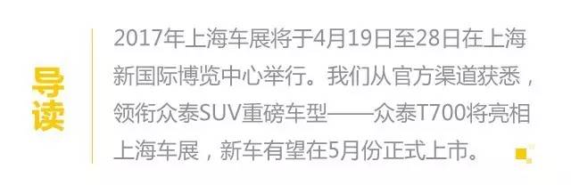 近日,一猫汽车网从相关渠道获悉了众泰T700的最新消息。T700是众泰T系产品线中的新成员,于3月26日正式下线的众泰T700主打国内自主品牌SUV市场,有望亮相4月中旬的上海车展,并随后将在5月份正式上市。