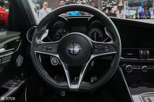 GIULIA非常意外的采用了将一键启动按钮集成在方向盘上的法拉利经典设计,而且QV版车型此处的按键还被采用了更加战斗的红色。