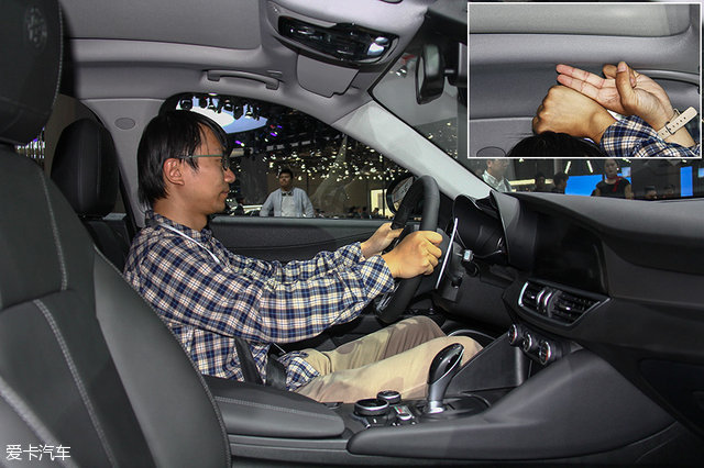 将前排座椅降至最低,一拳两指的头部空间相当宽敞(图中体验者身高1.77米)。而且,较低的坐姿加上不错的视野,这些都是一部运动车型最先要做到的。