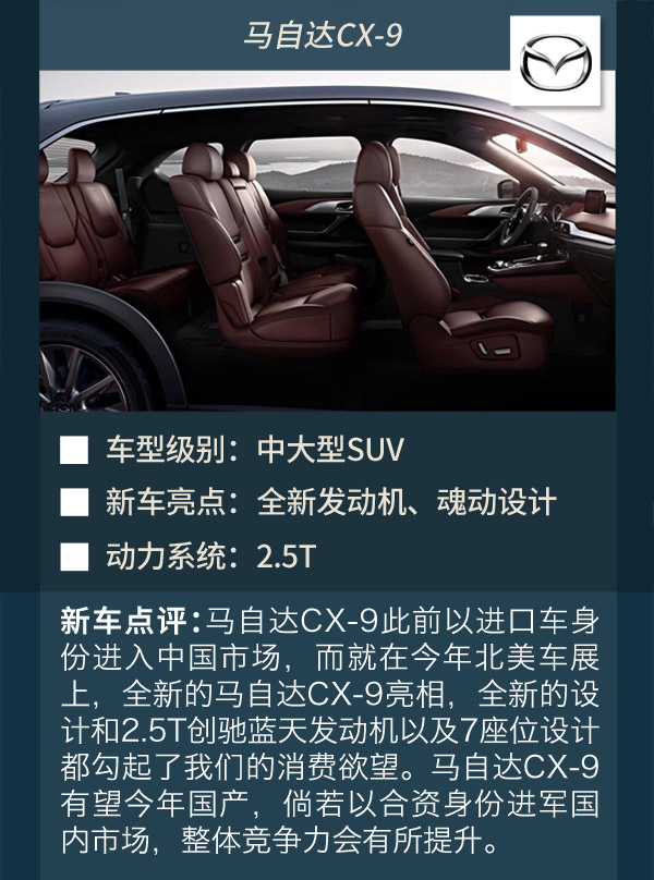 可以看到,中型和中大型SUV占据了文章的大部分篇幅,这也暗示了未来一段时间中国SUV市场的走势,并且我们可以大胆的猜测,在之后的几年时间里,主打7座和大空间的SUV车型能够占据市场的主导地位,这不仅是拜二胎政策所赐,同时也受制于消费者多元化的生活方式影响。至于将来这些新车将以何种姿态定位在市场中,还要看具体的售价和上市时间,那么请继续关注我们车先知账号,我们竭诚为您提供最新最全的新车报道。
