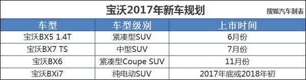 日前,我们从相关渠道获悉,宝沃汽车将在2017年年内推出四款新车,其中包括宝沃BX51.4T、宝沃BX7TS、宝沃BX6和宝沃BXi7。同时,宝沃不莱梅工厂将于今年奠基,2018年中期投产,以协助宝沃品牌进一步拓展欧洲市场。
