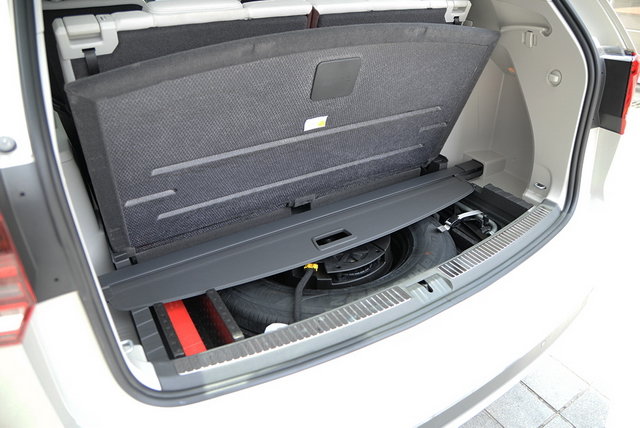 行李厢盖板下方摆放了备胎和后排的置物帘,另外还有一些多余的空间,可以放置一些小的杂物。