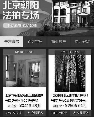 自5月18日“上架”至6月5日,71件拍品的总围观人次已达到5.2万人次,单套房产最多围观人数达到9100余人次。此前,朝阳法院在京东司法拍卖平台拍卖的一套房屋,评估价为590万元,起拍价为800万元,经72次出价,最终以942万余元成交,溢价率为60%。