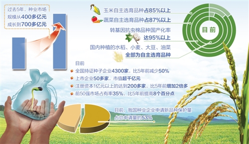 我国种业市场规模从400多亿元成长到700多亿元—— 黄金五年 种业“三变” 经济日报·中国经济网记者 乔金亮
