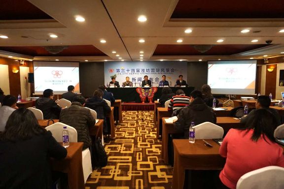 3月23日上午,由国家体育总局、国际风筝联合会和潍坊市人民政府联合主办,山东省人民政府大力支持的第34届潍坊国际风筝会在京召开新闻发布会,宣布第34届潍坊国际风筝会将于2017年4月15日在潍坊市开幕。