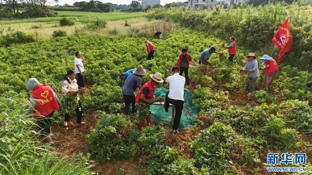 群众正在抢收花生。新华网发 韩海建 摄 |