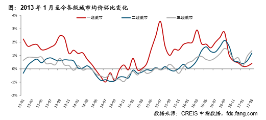 中国指数研究院分析称,在调控持续收紧背景下,预计未来一二线城市成交仍难见起色,价格整体平稳甚至部分城市下跌;而三四线城市在政策托底效应下,年内有望继续保持回温趋势。