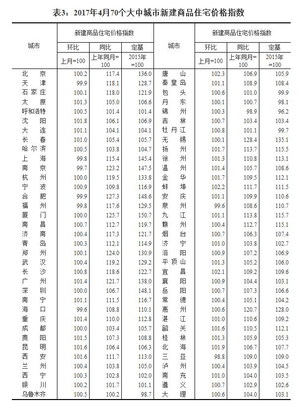 国家统计局今日发布了2017年4月份70个大中城市住宅销售价格统计数据。对此,国家统计局城市司高级统计师刘建伟进行了解读。