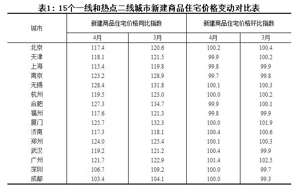 从环比看,4月份70个城市中有23个城市新建商品住宅价格涨幅比上月回落,比3月份增加13个;7个城市由上月上涨转为持平或下降;3个城市降幅扩大。