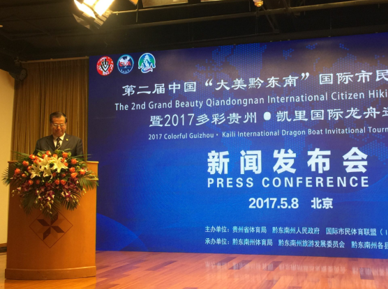 2017年5月8日,第二届“大美黔东南”国际市民徒步大会暨2017多彩贵州·凯里国际龙舟邀请赛新闻发布会在北京隆重召开。国际市民体育联盟CVA中国副主席岑传理、贵州省黔东南州委常委、州人民政府副州长樊炳清出席发布会并致辞,贵州省黔东南州人民政府副秘书长杨秀辉主持发布会。黔东南州体育局副局长谢翔云、施秉县人民政府副县长田昌琼、凯里市政协副主席陈亮出席新闻发布会并对活动相关情况进行介绍。