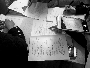 午饭时间,拿到卷子的学员挤到一个小会议室开始翻书上网查答案。不过,很快就有学员从手机上收到了整份卷子包括选择题、判断题、论述题在内的所有正确答案,并称是“老师给的”。而这份答案不一会儿就流传到了每个人手里,一份规定用时90分钟的试卷,大家十几分钟就全部搞定。