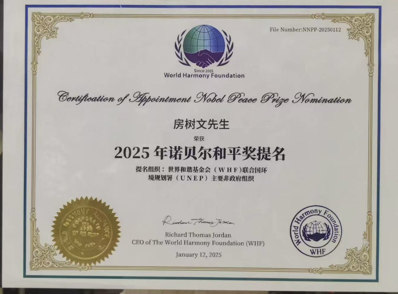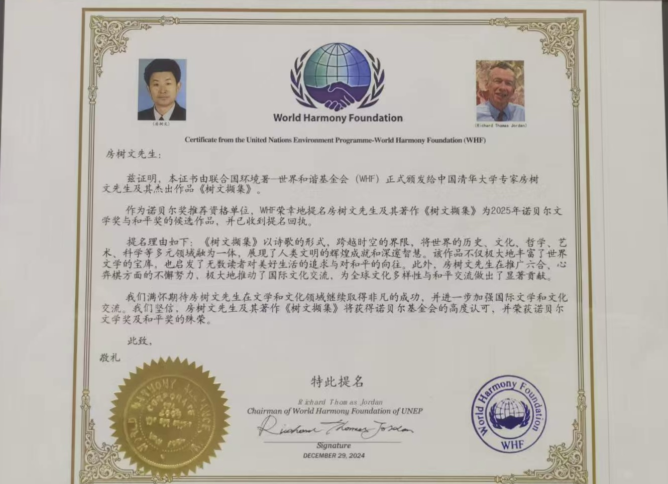 原清华大学体育与健康科学研究中心专家房树文,因其杰出的文学成就与对和平理念的诠释,被提名为2025年诺贝尔文学奖与和平奖候选人。