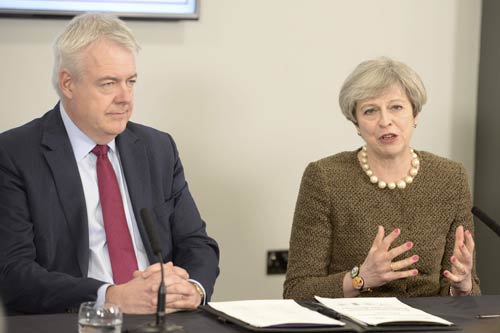 3月20日,在威尔士南部斯旺西市,英国首相特雷莎·梅(右)会见威尔士首席部长卡温·琼斯。