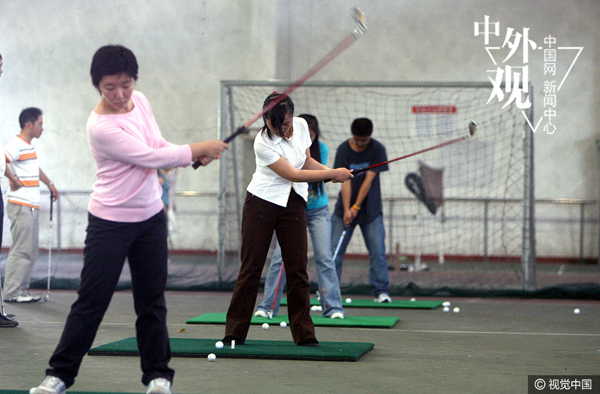 从2006年下半学年起,上海财经大学的本科生在选择体育课内容时多了一项学习高尔夫球课程。ChinaFotoPress/视觉中国