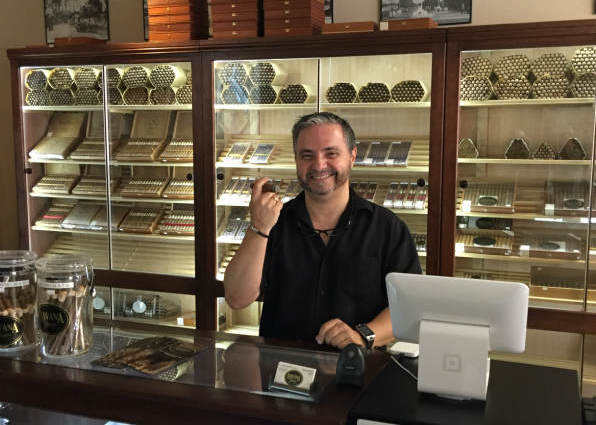 海湖庄园附近一家雪茄制作店店主拉扎罗·金塔纳。(新华社记者陆佳飞摄)