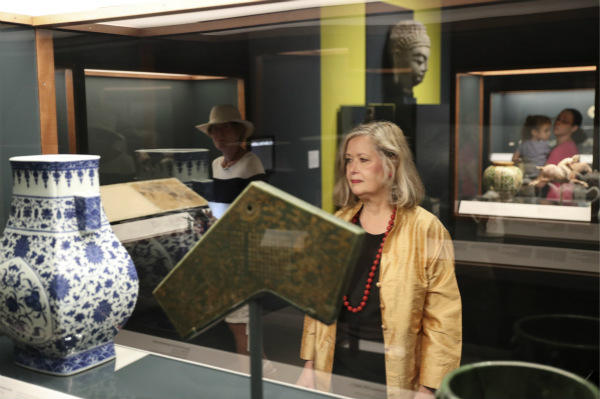 劳里·巴恩斯正在展馆内观看中国文物。(新华社记者王迎摄)