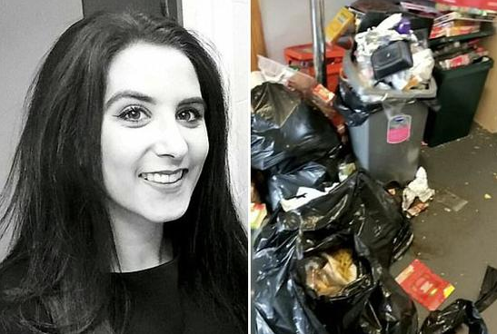 【一间最脏的寝室】 获得“最佳”的称号总是令人骄傲自豪,但如果“最佳”是个十足的贬义词时,你会是什么滋味呢?近日,19岁的英国女孩布里塔妮·库珀凭借一组寝室实景照,摘得“全英最脏学生寝室”称号。更具讽刺意味的是,现年大一的布里塔妮正在西英格兰大学攻读房地产学。 布里塔妮的父亲是在网站上看到这个“最脏学生寝室”的比赛,想到女儿和室友都不经常打扫房间卫生,就鼓动女儿报名参加。布里塔妮听从了父亲的建议,随后便在网上上传了一组自己寝室的照片参加了比赛。