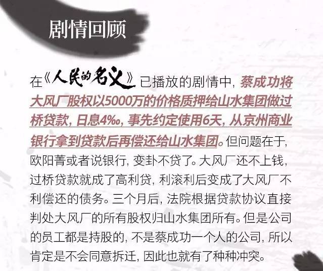 摘要:4月8日,BBC发布文章介绍中国反腐题材电视剧《人民的名义》,并称为为中国的《纸牌屋》。 这部剧除了抓贪官,更注重挖掘由腐败带来的一系列连锁反应。由赵德汉引出丁义珍,由丁义珍引出光明峰项目中存在的问题,比如大风服饰厂和山水集团的股权纠纷,大风服饰厂的地皮拆迁问题。 剧情虽然不算复杂,但却涉及到了许多金融、经济知识,现在,就来为大家复盘和解析。